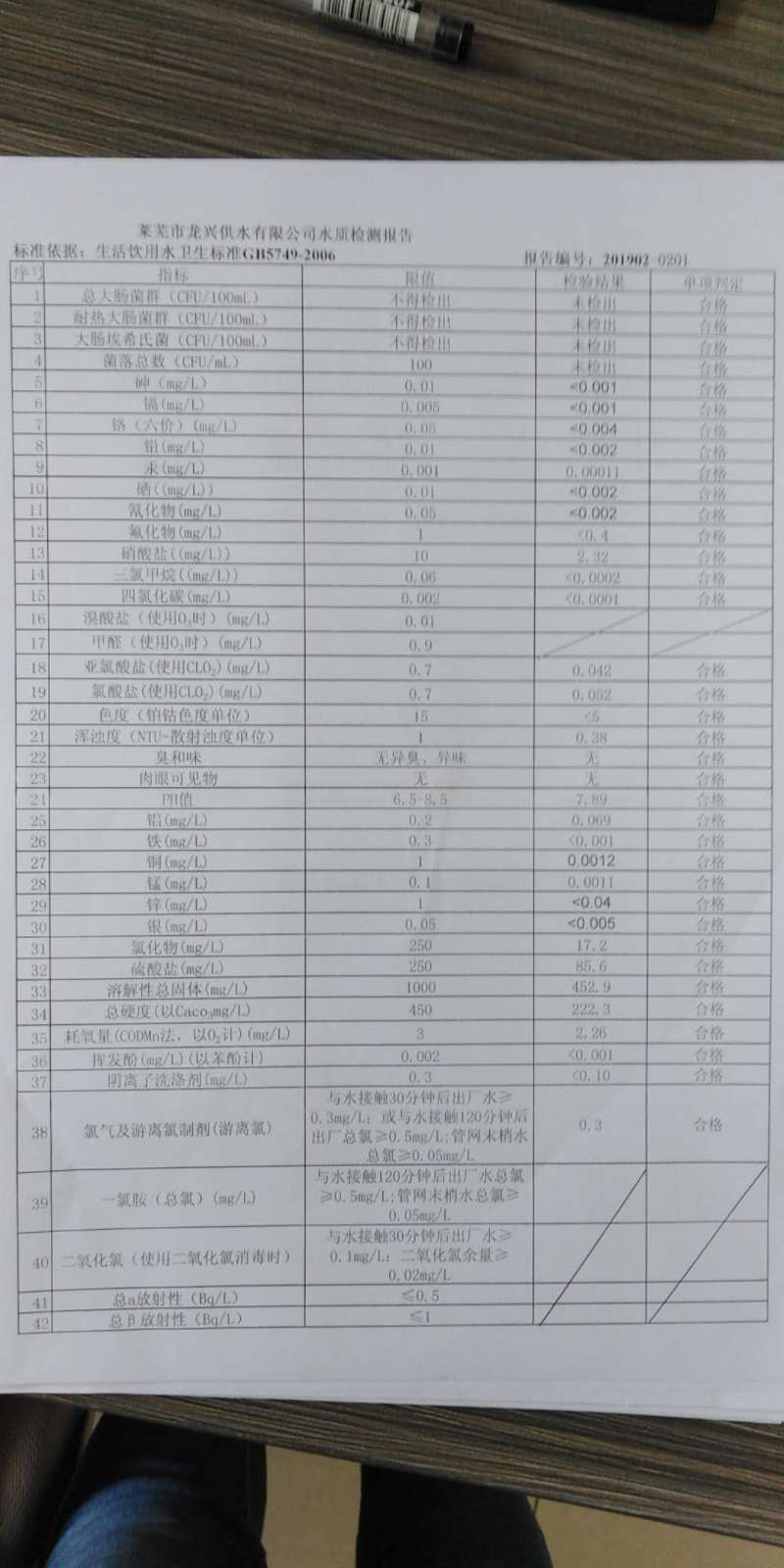青島海關管網水龍頭水質檢測報告